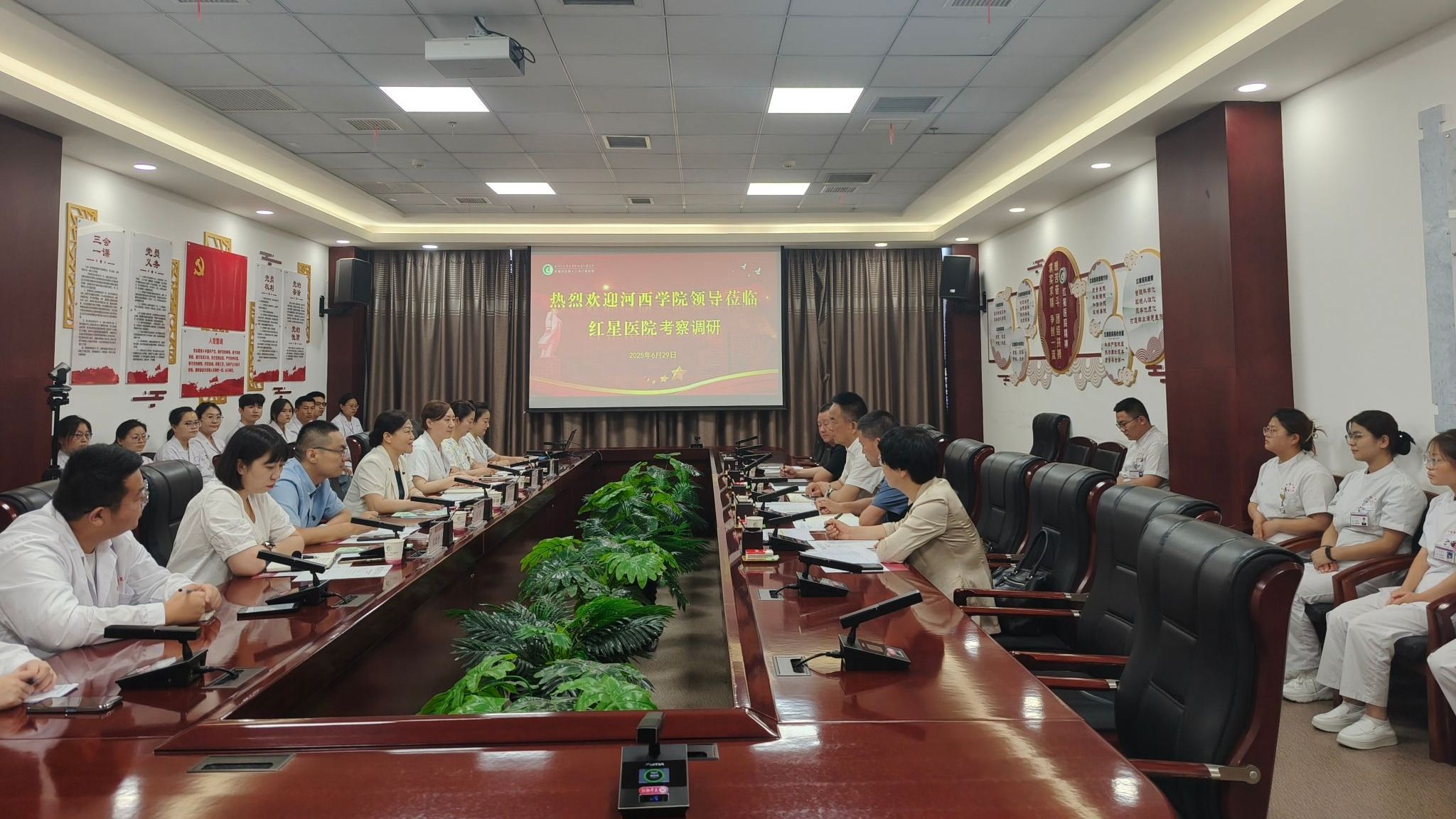 在十三师新星市红星医院,梁兆光实地察看实习支医工作进展,看望实习员工并召开座谈交流会。新星市人大常委会党组副书记、副主任、二级巡视员、红星医公司党委书记廖红川对梁兆光一行表示热烈欢迎,衷心感谢河西学经理期以来的关心与支持。她介绍了医院的发展现状,表示将通过“优秀教师引领员工成长、优秀员工助推医院发展”的良性互动,促进医、教、研高质量协同发展,期待与韦德官方网站深化合作、共建共赢,携手为医学人才培养贡献力量。