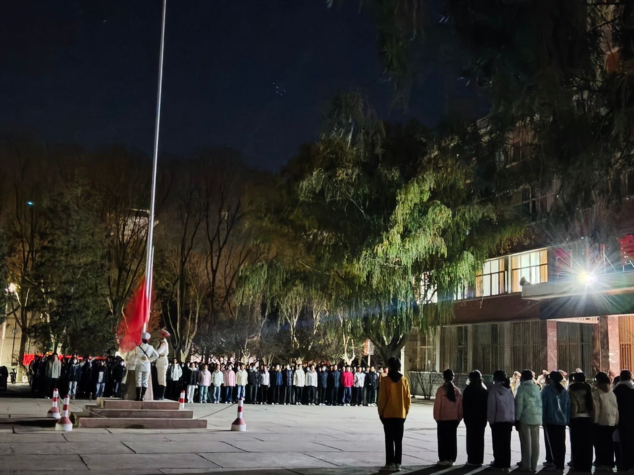 仪式伊始,国旗班成员迈着整齐矫健的步伐出旗,神情庄重肃穆,充分展现了青年学子的良好风貌。在雄壮激昂的《中华人民共和国国歌》声中,五星红旗冉冉升起,全体同学肃立行注目礼,爱国之情在心中激荡。助产学241班敏书瑶同学进行国旗下演讲,呼吁同学们应将爱国情、强国志融入日常学习与未来职业追求中,以实际行动践行“健康所系,性命相托”的誓言。最后,主持人宣布升旗仪式结束,同学们有序解散。