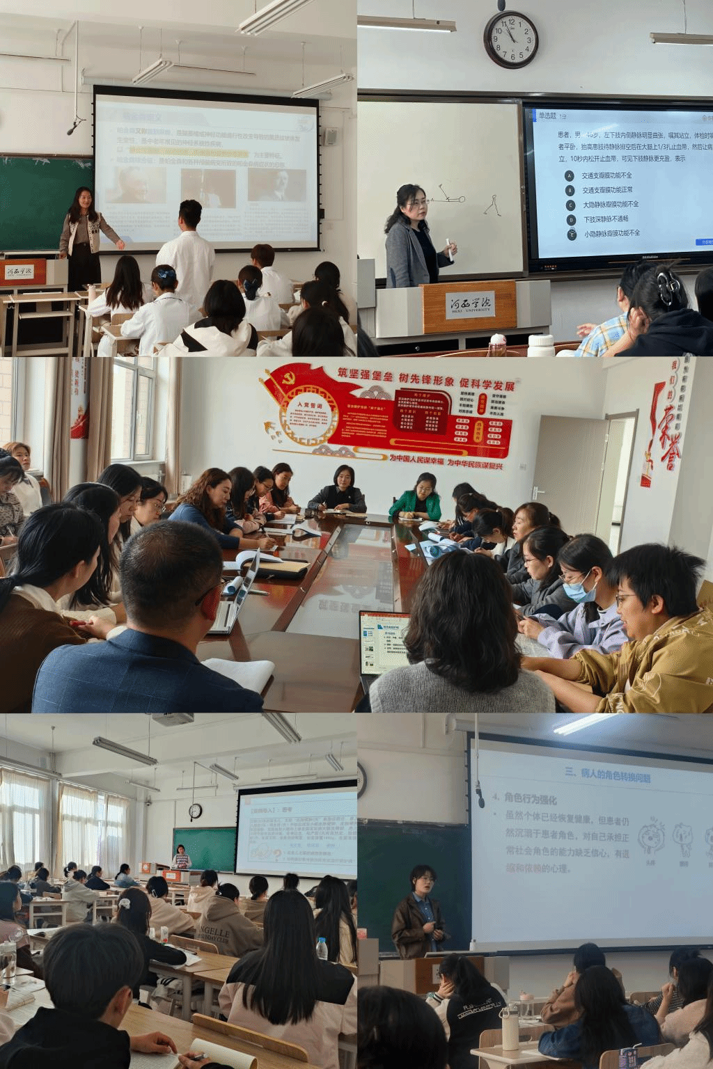 程根娣主讲《老年人综合能力评估》,以“帕金森综合症评估”为主题,通过极具亲和力的语言引导员工、鼓励员工、与员工交流互动,不断启发员工思考,培养员工创新思维和解决问题能力,并润物无声地融入课程思政,展示了扎实的教学基本功和个人教学素养,为大家展示了一场精彩的示范课。陈春燕主讲《外科护理学》,充分运用现代教育技术,使抽象的教学内容具体化、清晰化,助力课堂教学提质增效。范璐主讲《儿科护理学》,以案例驱动教学,将理论知识点有机融入课程案例中,引导员工主动思考,并熟练运用学习通平台开展线上线下教学互动,激发员工的学习创造力。杜瑄主讲《精神健康护理学》,教学过程目标明确、逻辑清晰、重点突出,适时引入文献资料和临床案例,培养员工的临床思维。